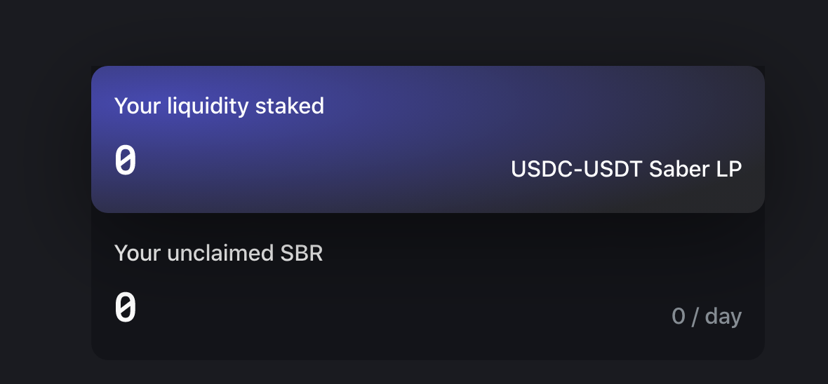 You can see in each farm how much you have liquidity stake, as well as how much SBR you have available to claim.