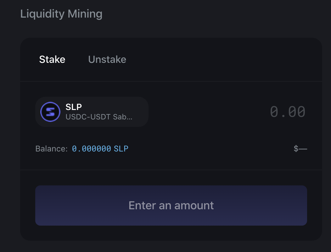 Once inside of a farm, you'll be able to stake or unstake LP tokens.